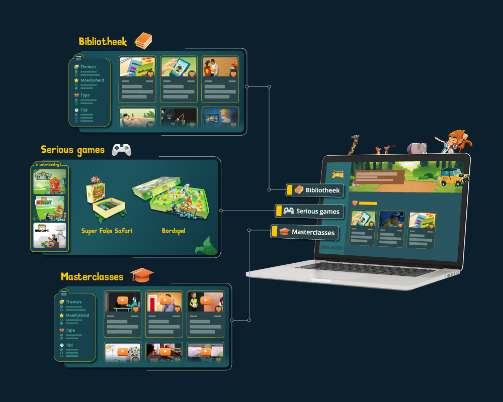 - Toegang tot alle Mediajungle serious games! Speel onbeperkt alle versies van ons Mediajungle bordspel, de Super Fake Safari, Nep/Echt en King of the Jungle!
